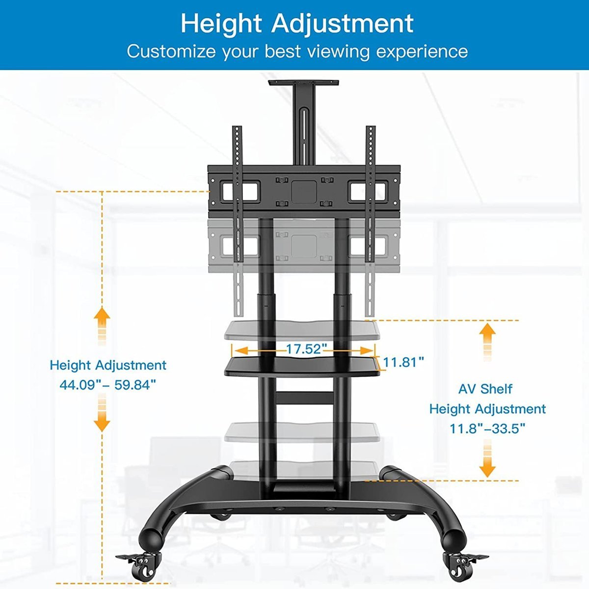 • Smart Storage: Includes an adjustable AV shelf and a video camera tray.