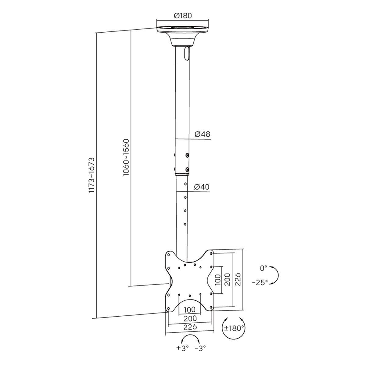 CB 02 Ceiling TV Mount (14"-42")