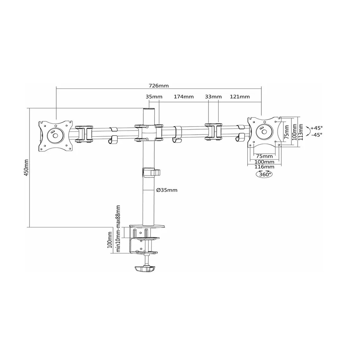 Dual monitor stand designed for side-by-side screen support with enhanced stability.